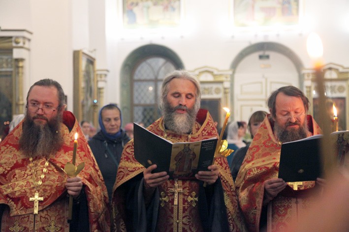 Богослужение совершил митрополит Ярославский и Ростовский Пантелеимон в сослужении секретаря Ярославского епархиального управления и настоятеля храма Параскевы Пятницы на Туговой горе архимандрита Адриана (Денисова), благочинного приходов центрального округа г. Ярославля протоиерея Олега Косолапова, настоятеля храма Никиты Мученика г. Ярославля игумена Бориса (Баранова), настоятеля Вознесенско-Благовещенского храма г. Ярославля иеромонаха Агафангела (Шкуранкова), руководителя Миссионерского отдела Ярославской епархии иерея Алексия Карпова и священнослужителей Ярославской и Рыбинской епархий Ярославской митрополии.