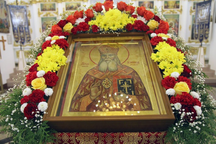 В этот день Божественную литургию в Казанском женском монастыре г. Ярославля, где пребывают мощи святителя, совершил митрополит Ярославский и Ростовский Пантелеимон в сослужении духовенства Ярославской епархии.