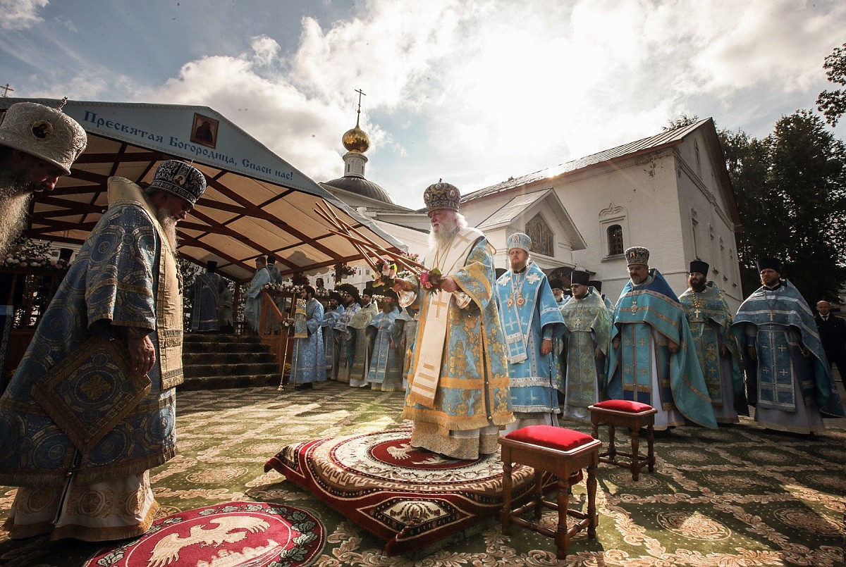 Накануне митрополит Ярославский и Ростовский Пантелеимон, епископ Рыбинский и Даниловский Вениамин, епископ Переславский и Угличский Феоктист и викарный епископ Некрасовский Борис в сослужении клириков Ярославской, Рыбинской и Переславской епархий Ярославской митрополии совершили в монастыре малую вечерню с акафистом Толгской иконе Божией Матери и всенощное бдение.