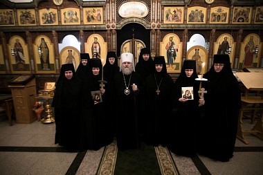 Перед началом пострига митрополит Павел обратился со словом к собравшимся, в котором отметил следующее: «Хотел бы особо помолиться сегодня вместе с вами, матушкой игуменией, сестрами. Сейчас мы помолимся Господу, чтобы Он принял постриг двух инокинь в монашество. Помолимся, чтобы всемилостивый Господь дал им силы монашеского подвига, ибо принять постриг немудрено, а исполнить его куда мудрее».