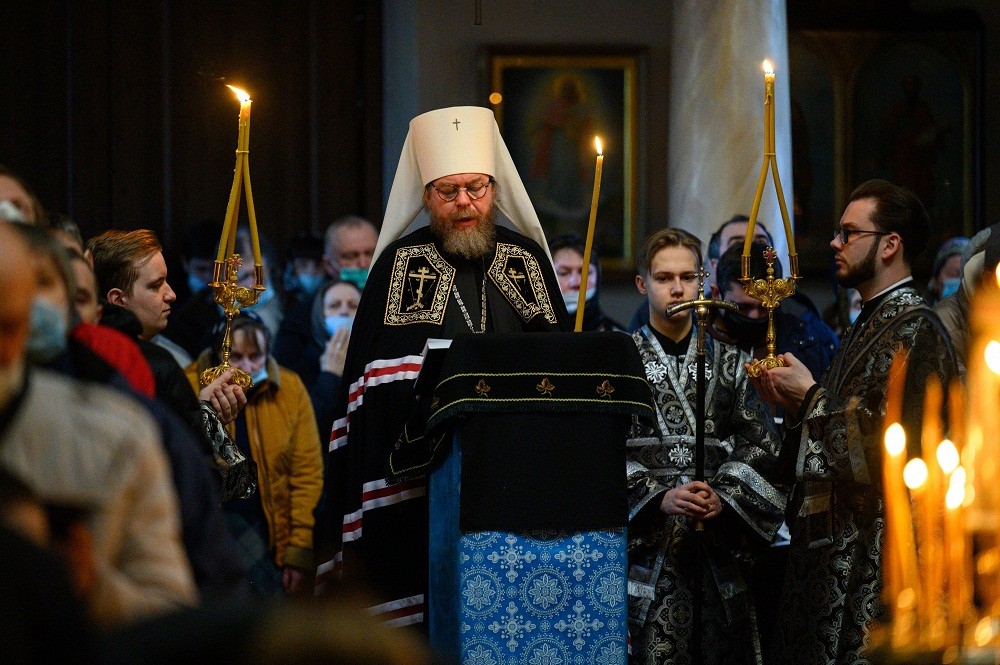 Вечером 15 марта 2021 года, в понедельник первой седмицы Великого поста митрополит Псковский и Порховский Тихон совершил чтение покаянного канона святого Андрея Критского в Свято-Успенском Псково-Печерском мужском монастыре.