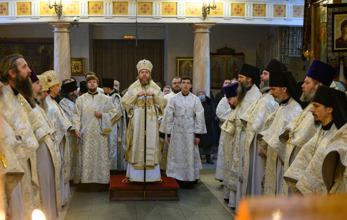 Его Высокопреосвященству сослужили: архимандрит Филарет (Кольцов), насельник Свято-Успенского Псково-Печерского монастыря; протоиерей Андрей Вахрушев, секретарь Псковского Епархиального управления; архимандрит Спиридон (Иващенко), наместник Свято-Благовещенской Никандровой пустыни; иеромонах Всеволод (Сиканов), наместник Иоанно-Богословского Савво-Крыпецкого монастыря; иеромонах Прохор (Андрейчук), благочинный Свято-Успенского Псково-Печерского монастыря; протоиерей Владимир Семиндяев, благочинный Печорского округа епархии; клирики Псковской епархии; гости обители в священном сане.