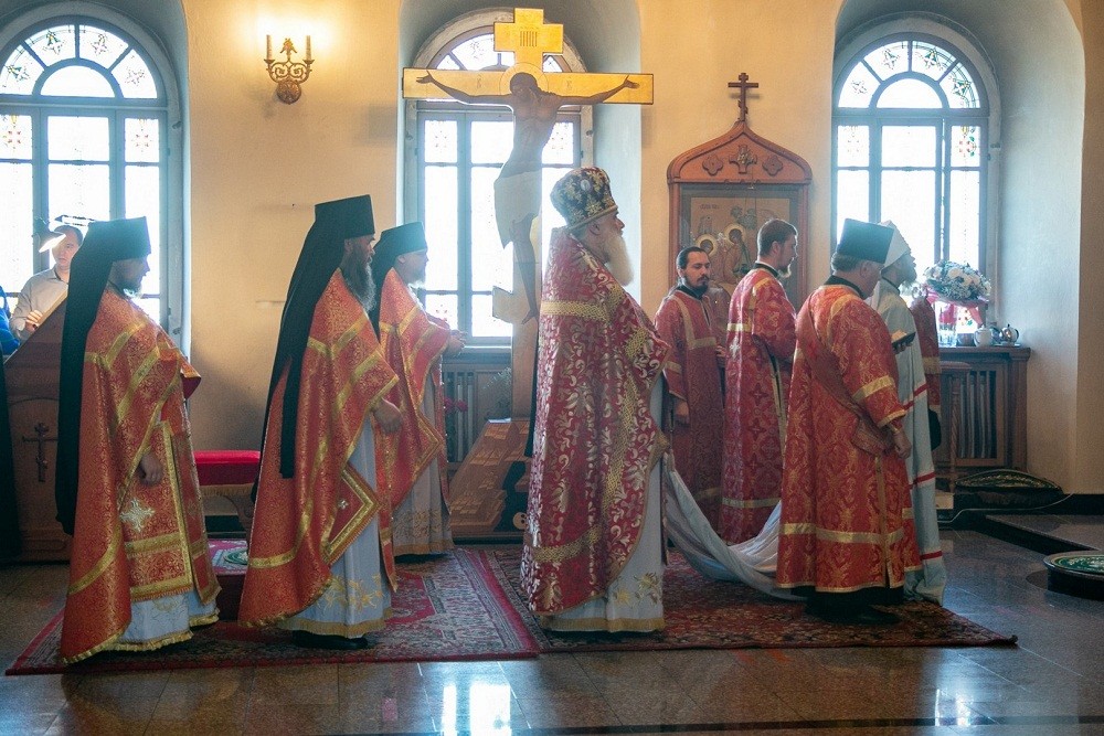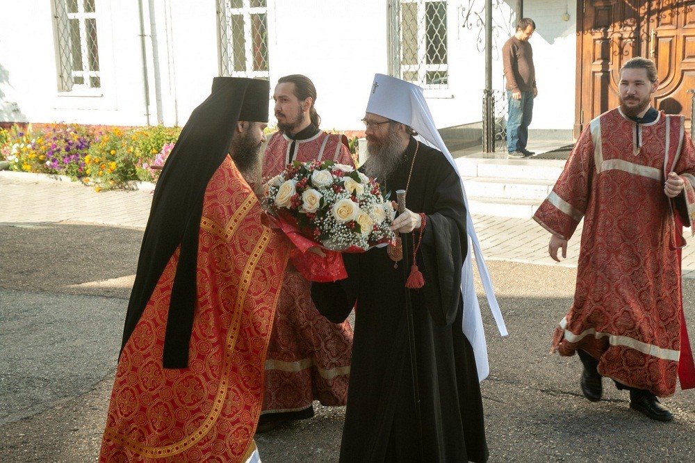По окончании Литургии Его Высокопреосвященство произнес проповедь, после чего был отслужен торжественный молебен на начало нового учебного года.