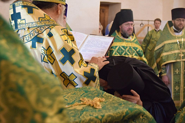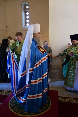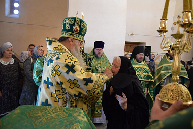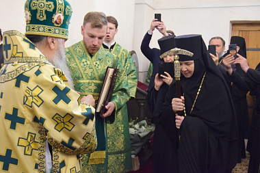 На малом входе архипастырь совершил поставление монахини Евфросинии в игумению обители в соответствии с решением Священного Синода.