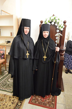«Надо все постепенно возрождать, черпать силы в молитве. Господь видит, что происходит, с какими проблемами мы сталкиваемся, насколько нам не хватает людей. Но не надо унывать, а все преодолевать с помощью Божией. Мы можем по-разному проводить время: работая или загорая на пляже, но оно неумолимо течет. Так лучше его провести в труде во славу Божию, чем в праздности. Мы видим пример матушки Ангелины: она трудилась, молилась, в этом состоянии и умерла. Так и мы должны – нужен подвиг и игумении, и сестер. Матушка игумения – всегда пример для сестер в смирении, терпении и послушании. И приходящие сюда будут видеть в вас любящую мать, которая готова помочь, поддержать, укрепить их. Желаю обители процветания, и вам, матушка, помощи Божией и заступничества Царицы Небесной в трудах», – завершил проповедь митрополит Варсонофий.