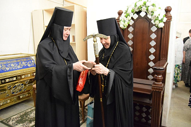 Правящий архиерей вручил матушке Евфросинии игуменский жезл.