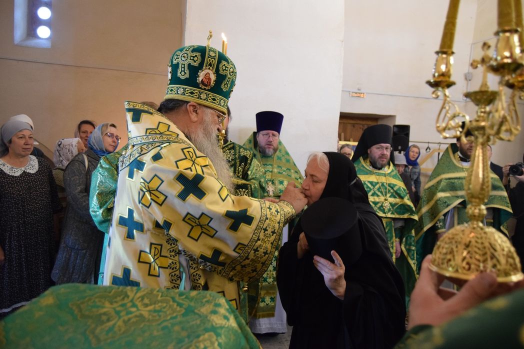 «Господь говорит: "Много званых, а мало избранных" (Мф. 22:14), – продолжил архипастырь. – Много званых и вообще в христианстве, и в монашестве, а избранных всегда мало, но Бог, тем не менее, находит людей, которым поручает то или иное дело. Эта обитель посвящена Матери Божией. Она как Хозяйка наблюдает за жизнью сестер и игумении, помогает им. У монашествующих помощников немного. Император Александр Третий говорил, что у России два союзника – армия и флот, а у нас, монашествующих, только один – благодать Божия. Мы должны все делать только в союзе с благодатью. Тогда все получится. Этот союз надо укреплять, очищая сердце, делать его сосудом этой благодати. Основателями монастырей обычно были святые – так, Троице-Сергиева лавра возникла молитвенными трудами преподобного Сергия Радонежского. Но чтобы восстановить монастырь, тоже нужен сосуд благодати, и ничуть не меньший. Желаю вам, матушка Евфросиния, помощи Царицы Небесной, чтобы вы эту обитель укрепили. Конечно, венец для игуменов и игумений – когда совершаются постриги, число монашествующих в монастыре увеличивается, и их хватает и для хора, и для других послушаний. Это большая радость. Сестры вкладывают в свое пение умиление, создавая местные напевы, – так отрадно это слушать! Я любил ездить в Пюхтицкую обитель и слушать, как там монахини поют. В советское время это был один из немногих действующих женских монастырей в нашей стране».