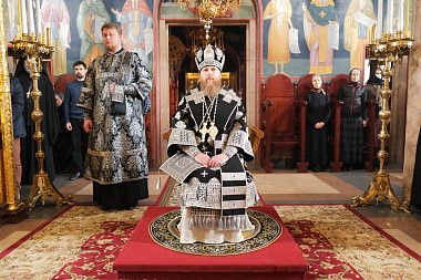 После сугубой ектении митрополит Савва вознес молитву об избавлении от вредоносного поветрия.