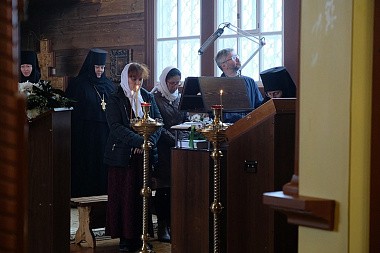 По окончании богослужения от лица насельниц и прихожан святой обители со словами благодарности к Высокопреосвященнейшему Савве обратилась игумения София (Прощаева).