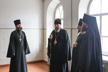 Далее владыка в сопровождении игумена монастыря осмотрел исторический корпус братских келий, посетил хозяйственный двор и побеседовал с прихожанами пустыни.