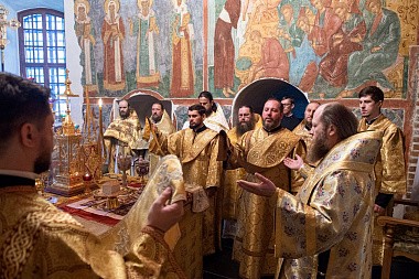 13 сентября 2020 года, в праздник Положения честного Пояса Пресвятой Богородицы, день перенесения мощей благоверных князя Петра и княгини Февронии, Муромских чудотворцев, митрополит Вологодский и Кирилловский Савва совершил Божественную литургию в Успенском соборе Кирилло-Белозерского мужского монастыря.