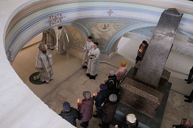 По прибытии в обитель митрополит Савва поклонился гробнице Святейшего Патриарха Иова.