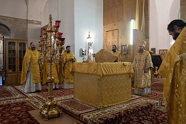 Высокопреосвященнейшему владыке сослужили руководитель Службы протокола Тверской епархии протоиерей Александр Любавин, заместитель руководителя Службы протокола Тверской епархии иеромонах Агапит (Евдокимов), духовенство обители.