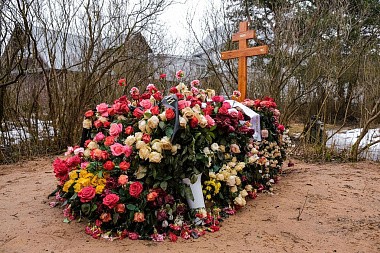 По окончании богослужения владыка Савва отслужил заупокойную литию возле могилы новопреставленного А. И. Сидорова, профессора МДАиС, который похоронен за алтарем собора на территории монастыря.