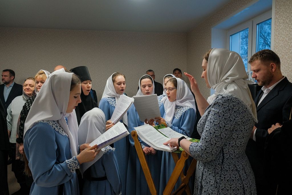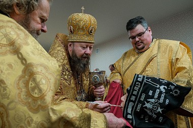 По окончании Литургии состоялось торжественное открытие и освящение новых трехэтажных корпусов социальной гостиницы «Дочки-матери». Чин освящения совершил митрополит Савва.