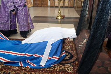 В завершение службы все верующие с благоговением подходят поклониться перед Распятием, Крестом Христовым, который на пассии выносится на середину храма.
