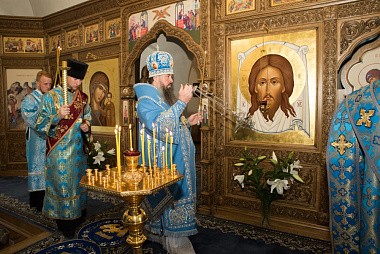 Его Высокопреосвященству сослужили наместник Спасо-Преображенского мужского монастыря игумен Сергий (Зайчиков) и братия обители в священном сане.