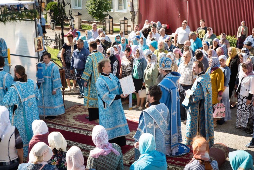 В завершение правящий архиерей вручил благодарственные письма деятельным членам прихода, понесшим труды во славу святой обители.