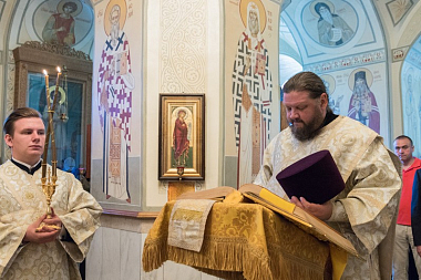 После пения «Отче наш» и запричастного стиха ключарь Алексиевского собора протоиерей Петр Голенских произнес проповедь о святителе Алексии, Небесном покровителе монастыря.