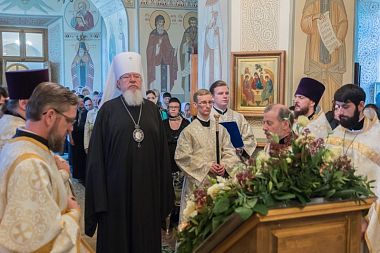 По завершении богослужения митрополит Сергий поздравил всех присутствующих с престольным праздником и обратился к духовенству, монашествующим и прихожанам с архипастырским словом. Его Высокопреосвященство подчеркнул особую значимость действия в Церкви и в жизни человека Святого Духа, сошествие Которого мы празднуем в период Пятидесятницы, а также напомнил о важном влиянии на судьбы Руси молитв и духовного водительства святого митрополита Алексия.