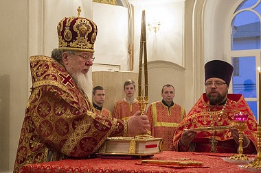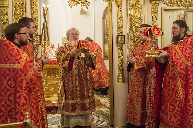 После сугубой ектении митрополит Сергий вознес молитву о мире и прекращении междоусобной брани в Украине.