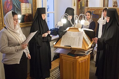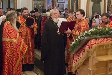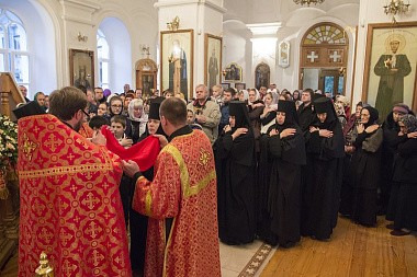 По отпусте Литургии было совершено славление великомученице Варваре и возглашено многолетие настоятельнице монастыря игумении Варваре.