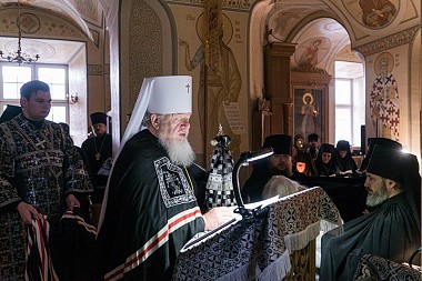 За богослужением молились настоятельница Алексиево-Акатова монастыря игумения Варвара (Сажнева), монашествующие сестры, послушницы и прихожане обители.