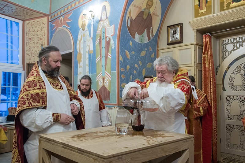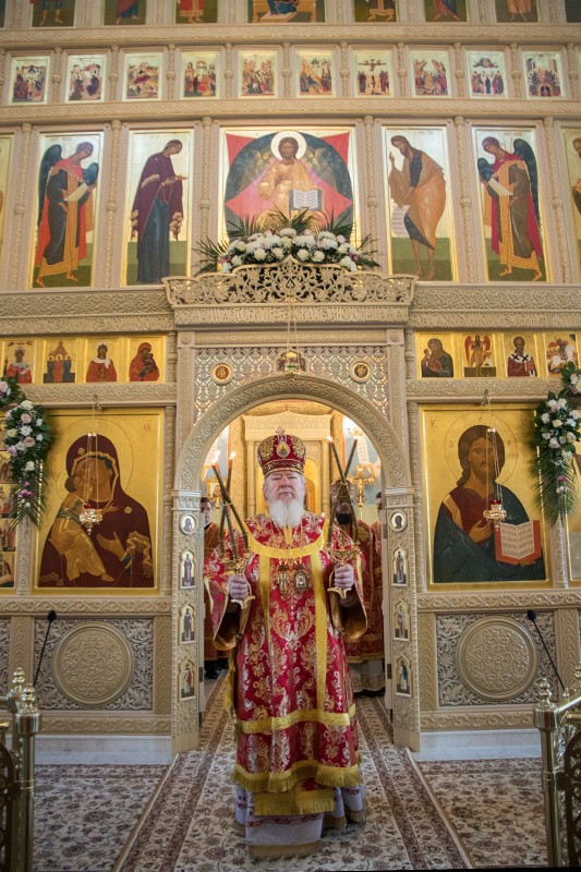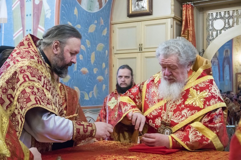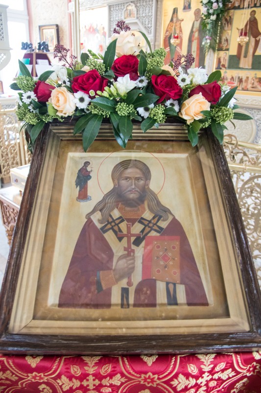 После отпуста Литургии митрополит Сергий с сослужащим духовенством совершил славление у иконы священномученика Петра в центре храма и возгласил молитву ныне прославляемому Воронежскому архипастырю, праведной жизнью и мудрым словом возвратившему множество духовенства из обновленческого раскола и сохранившему верность Господу до своей страдальческой кончины в Соловецком лагере († 1929).