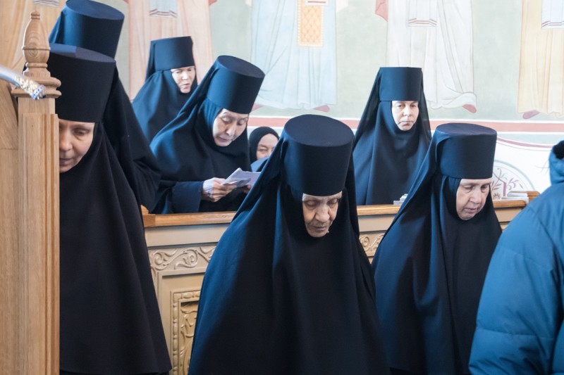 За богослужением молились настоятельница Алексиево-Акатова монастыря игумения Варвара (Сажнева), монашествующие сестры и послушницы, прихожане и паломники святой обители.
