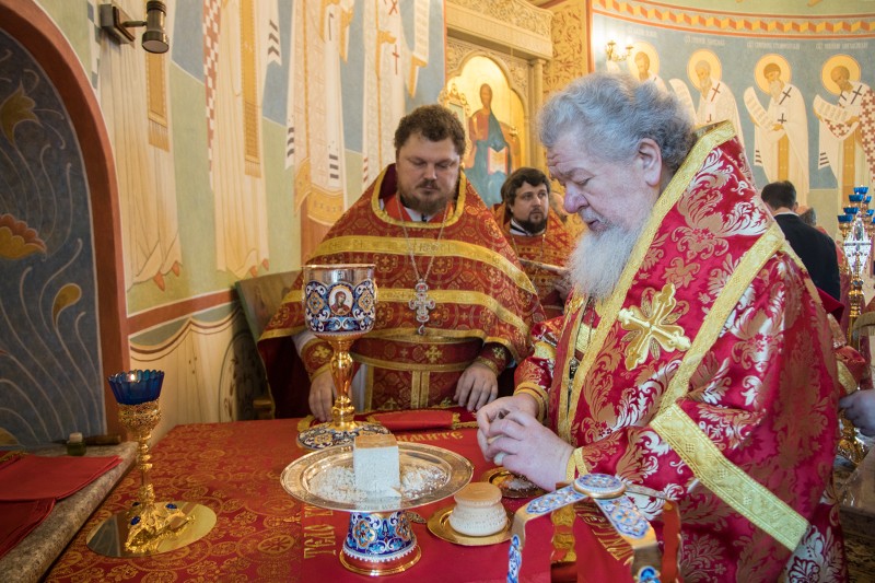 Освящение храма, совершаемое архиереем, одно из самых торжественных церковных богослужений. Чин освящения храма включает в себя: устройство престола (святой трапезы), омовение и помазание его святым миром; облачение престола и жертвенника; окропление святой водой и помазание святым миром стен храма; перенесение и положение под престолом и в антиминс частиц святых мощей; заключительные молитвы, сугубую ектению, отпуст, многолетие и окропление храма и верующих святой водой, совершаемое архиереем с кафедры в середине храма. Через эти священнодействия храм, созданный человеческими руками, обретает особую благодать Божию и становится вместилищем святыни. «Исполнимся во благих дому Твоего, свят храм Твой, дивен в правде», – восклицал святой царь и псалмопевец пророк Давид (Пс. 64:5–6).