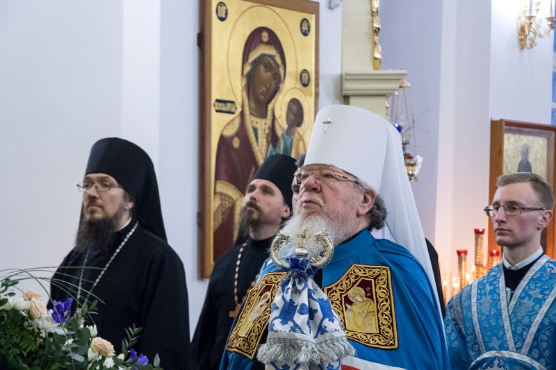 По окончании Литургии митрополит Сергий с сослужащим духовенством совершил славление Дивногорской-Сицилийской иконе Божией Матери. Попеременно хором и священнослужителями были исполнены тропарь и кондак, а затем все молящиеся, духовенство, монашествующие и миряне воспели молитвенную песнь Пресвятой Богородице «Царице моя Преблагая» и величание.