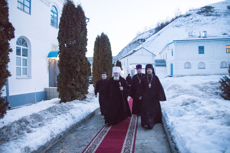 На малом входе глава Воронежской митрополии совершил возведение наместника Дивногорского монастыря иеромонаха Алексия (Сукачева) в сан игумена и вручил новопоставленному игуменский посох. Возведение было совершено в связи с определением Священного Синода Русской Православной Церкви об утверждении иеромонаха Алексия (Сукачева) в должности наместника Успенского Дивногорского мужского монастыря (журнал № 139 заседания Священного Синода от 28 декабря 2018 года).