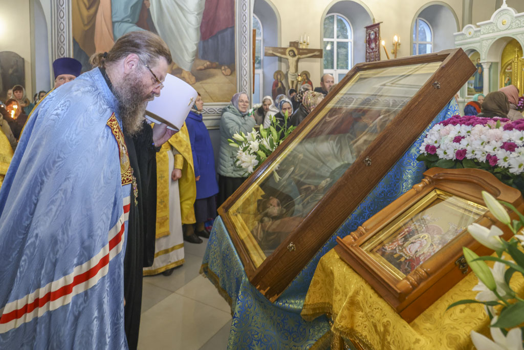 За богослужением настоятельница Вознесенской обители игумения Тавифа (Ковылова) с сестрами и прихожане.