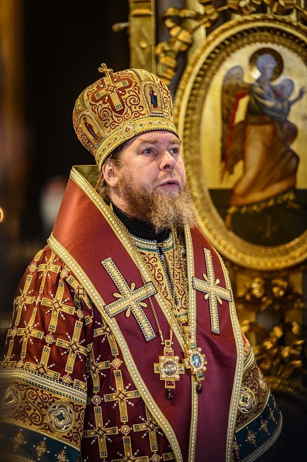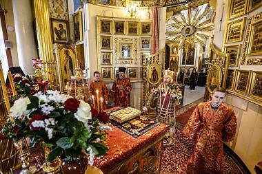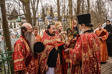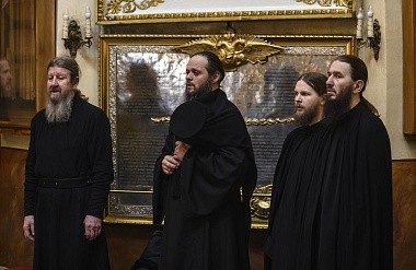 Его Высокопреосвященству сослужила братия обители в священном сане.
