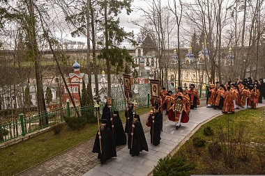 21 апреля 2020 года, во вторник Светлой седмицы, митрополит Псковский и Порховский Тихон совершил Божественную литургию с пасхальным крестным ходом в Свято-Успенском Псково-Печерском мужском монастыре.