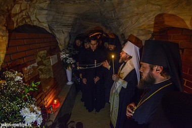 Его Высокопреосвященству сослужили: епископ Гдовский Фома, викарий Псковской епархии; благочинный обители архимандрит Филарет (Кольцов) с братией монастыря и гости митрополии в священном сане.