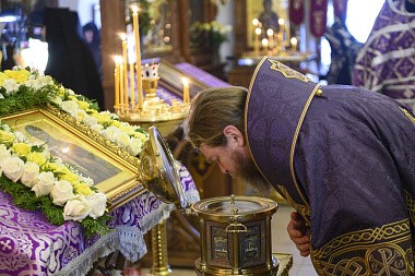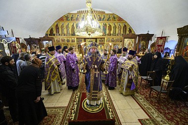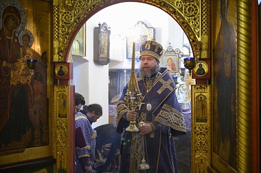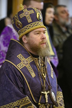 По отпусте Литургии владыка Тихон обратился к собравшимся с архипастырским словом.