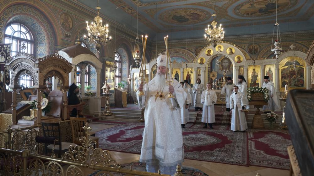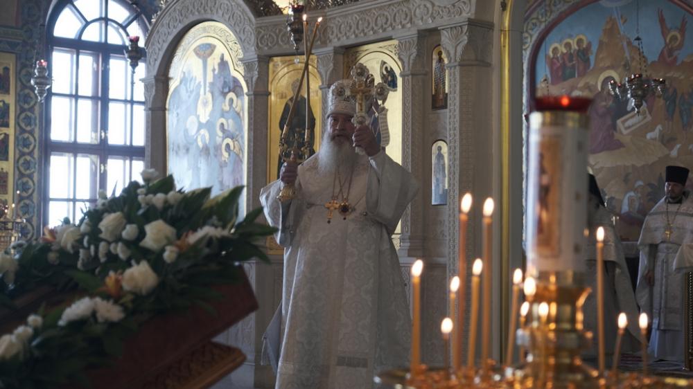 По окончании богослужения священноархимандрит Богородице-Рождественского монастыря митрополит Тихон обратился к пастве и братии со словом назидания.
