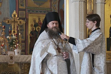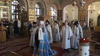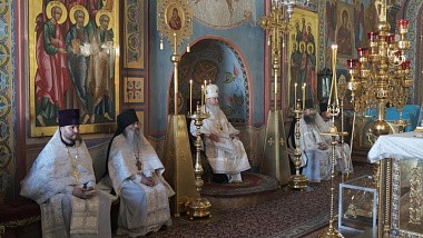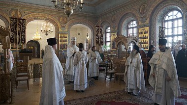 В Христорождественском храме обители Его Высокопреосвященству сослужили наместник монастыря игумен Кирилл (Сурков) с братией в священном сане и клириками монастыря.