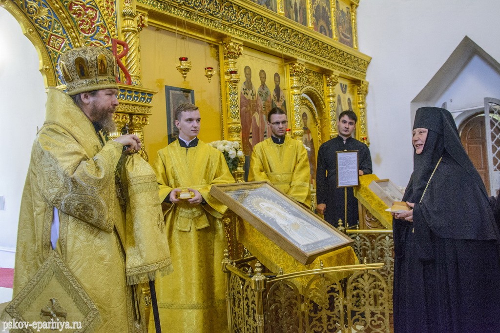 За богослужением молились митрополит Евсевий (Саввин), настоятельница Елеазаровской обители игумения Евфросиния (Головнева) с сестрами, многочисленные прихожане и паломники.