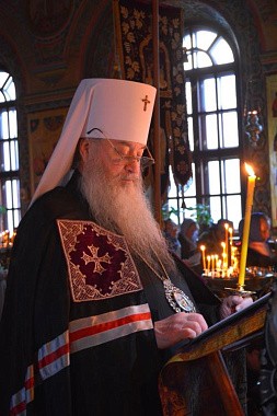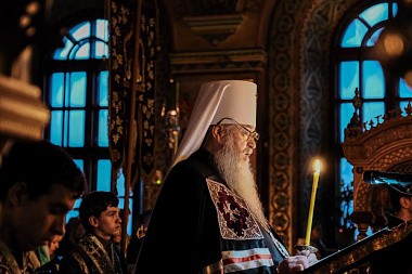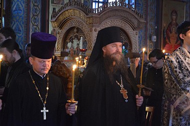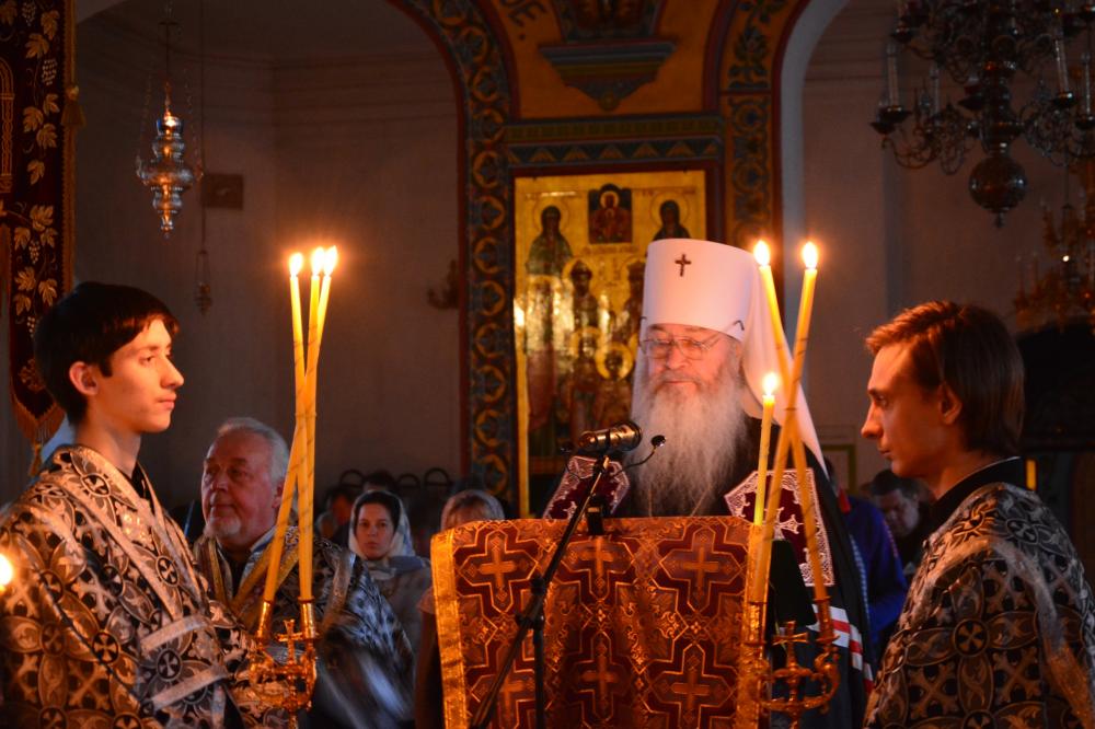 Его Высокопреосвященству сослужила братия Богородице-Рождественского монастыря в священном сане.