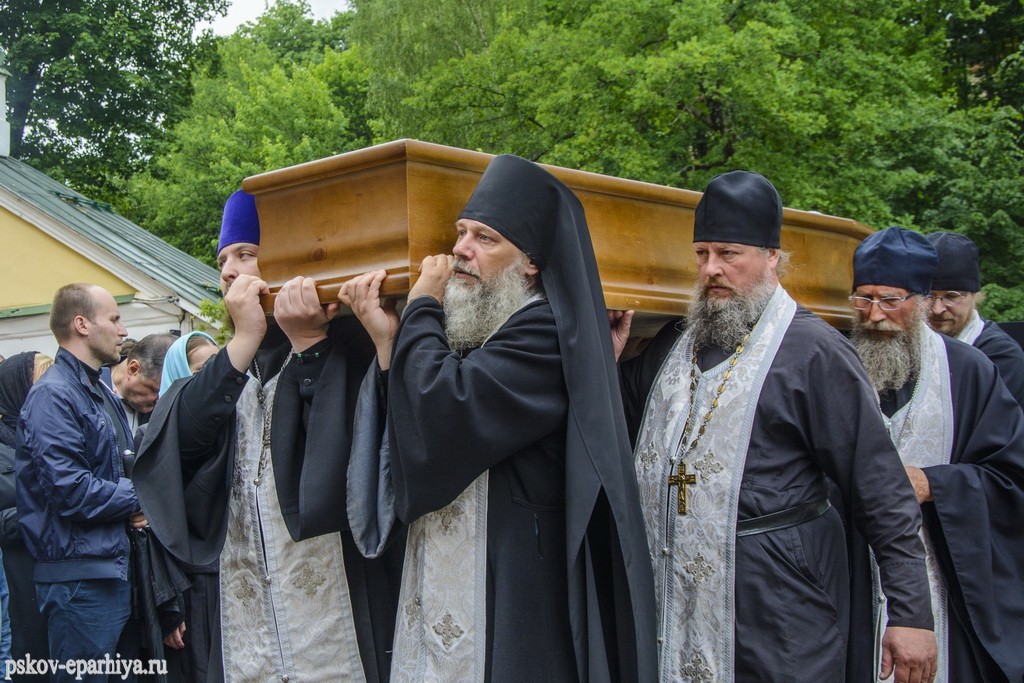 По окончании отпевания гроб с телом схиархимандрита Тихона был перевезен в Свято-Успенский Псково-Печерский монастырь. В обители псковский митрополит совершил чин погребения и заупокойную литию по новопреставленному старцу.