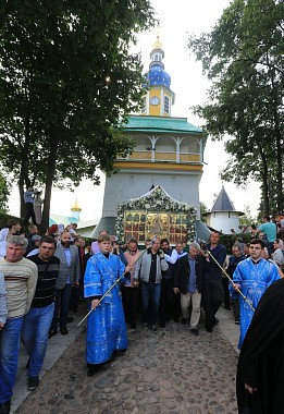 Накануне, по традиции, главная святыня монастыря – чудотворная икона Успения Божией Матери была перенесена крестным ходом из Успенского храма к Михайловскому собору, где было совершено всенощное бдение.