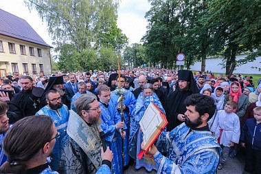 По окончании Литургии владыка Тихон обратился к присутствующим с архипастырским словом. Поздравив молившихся, Его Высокопреосвященство сказал о значении в нашей жизни Божией Матери как великой заступницы рода человеческого. Затем состоялся традиционный праздничный крестный ход с древним чудотворным образом Успения.