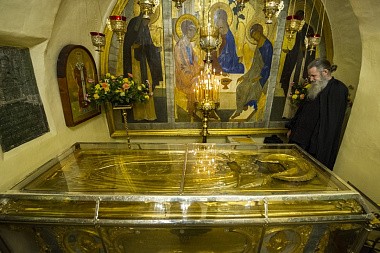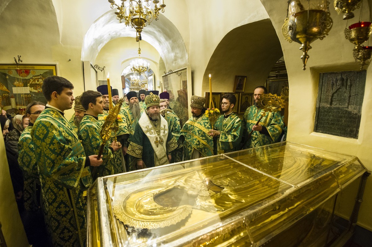 В завершение глава Псковской митрополии совершил славление и прочитал молитву празднуемому святому перед ракой с его честными мощами.