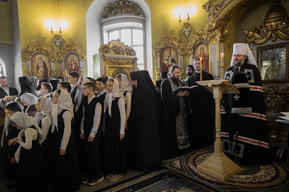 По окончании великого повечерия владыка обратился с проповедью к духовенству, настоятельнице, сестрам и всем присутствующим в храме: