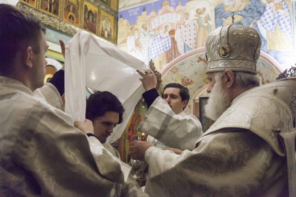 Его Высокопреосвященству сослужили благочинный приходов Ростовского округа протоиерей Роман Крупнов, наместник Спасо-Яковлевского Димитриева мужского монастыря Ростова Великого игумен Августин (Неводничек) и клирики Ростовского благочиния.
