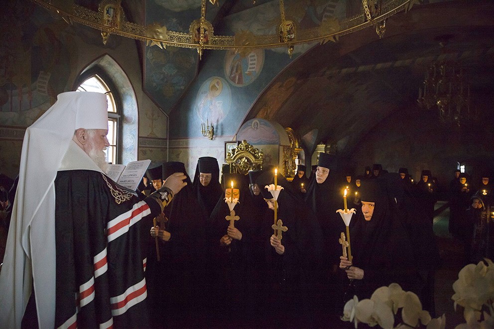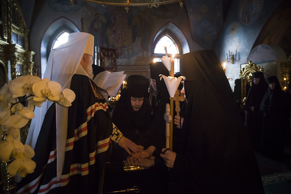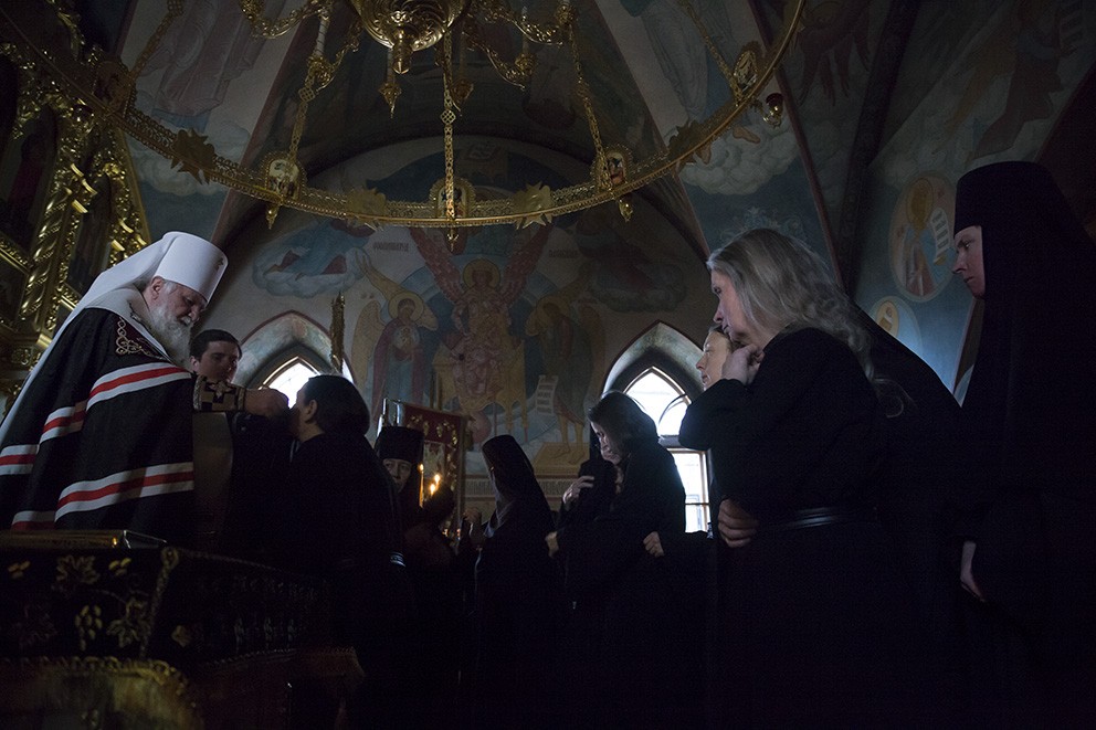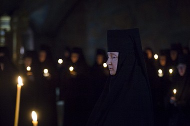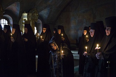 «Сегодня наш монашеский чин пополнился новыми сестрами. Каждый раз, когда слышишь "объятия отча отверсти ми потщися", перед нами встает образ отца, убеленного сединами, который проглядел глаза свои, истоптал ноги, выходя на дальнюю дорогу, дабы увидеть заблудшего сына, который бы по пыльной дороге шел к отеческому дому.