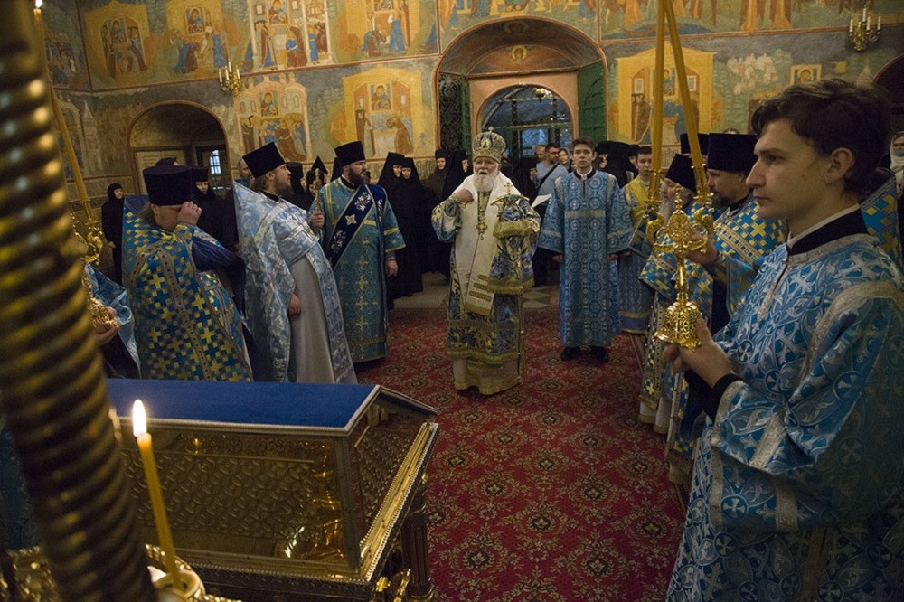 В этот день владыка с духовенством, настоятельницей монастыря игуменией Варварой, сестрами обители и паломниками совершили славление празднику в летнем соборном храме, освященном в честь Введения во храм Пресвятой Богородицы.