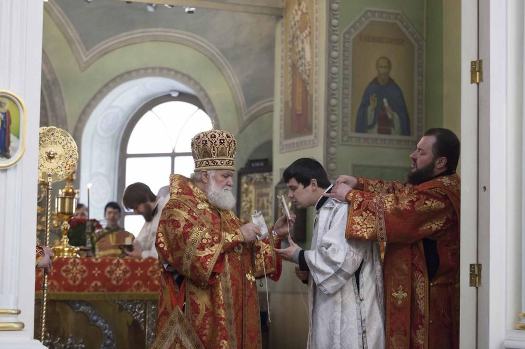 За богослужением владыка митрополит рукоположил в сан священника диакона Кирилла Аверьянова, в сан диакона – Кирилла Белянина.